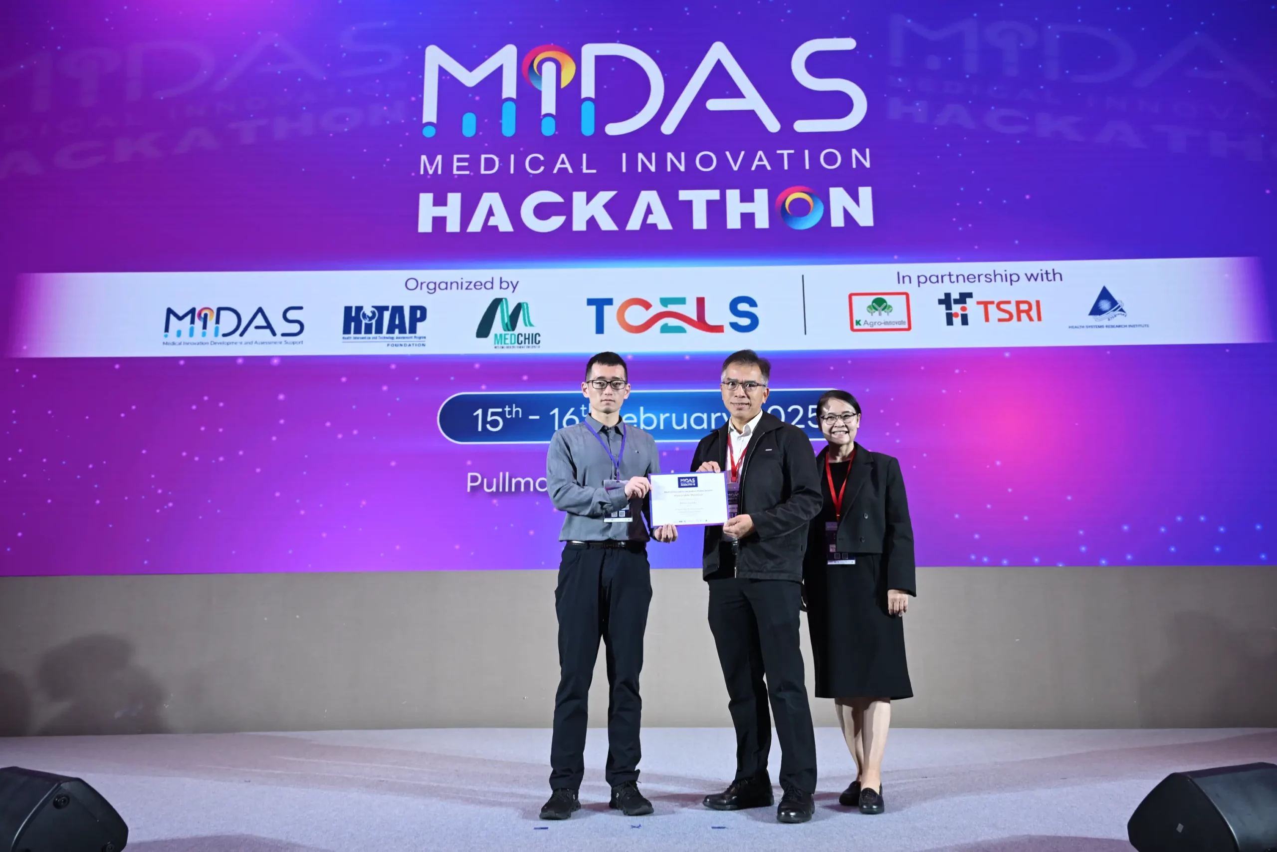 วันที่ 15 และ 16 กุมภาพันธ์ 2568 ทพ.ประจักษ์ จริยพงศ์ไพบูลย์ และทีมงานหมุดเกลียวโรงพยาบาลราชวิถีได้รับรางวัล Semifinalist งานนวัตกรรมด้านการแพทย์และ Honorable Mention Poster Session ภายในงาน Medical Innovation Hackathon 2025