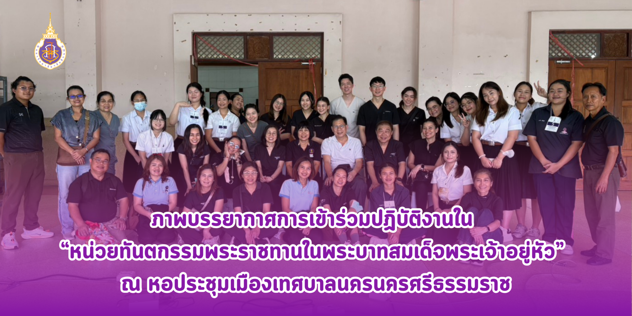 เมื่อวันที่ 19-20 มกราคม 2569 วิทยาลัยทันตแพทยศาสตร์นานาชาติ มหาวิทยาลัยวลัยลักษณ์ (Walailak University International College of Dentistry) นำโดย รศ.ดร.ทพ.พูนศักดิ์ ภิเศก คณบดี พร้อมด้วย ศ.ดร.ทพญ.ปัทมา นาถะภักติ นำนักศึกษาทันตแพทย์ชั้นปีที่ 1 เข้าร่วมปฏิบัติงานใน “หน่วยทันตกรรมพระราชทานในพระบาทสมเด็จพระเจ้าอยู่หัว” ณ หอประชุมเมือง เทศบาลนครนครศรีธรรมราช
